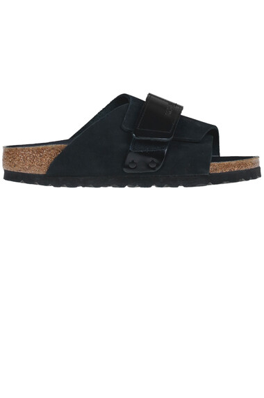 Kyoto nubuck slides with leather velcro-straps, cork anatomical insole.