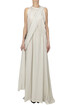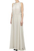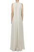 Long silk dress, halter neckline, back long sash, back button-fastening.