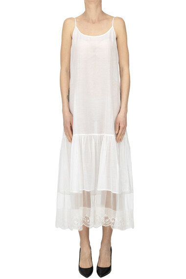Cotton and silk slip dress, embroidered fabric hem.