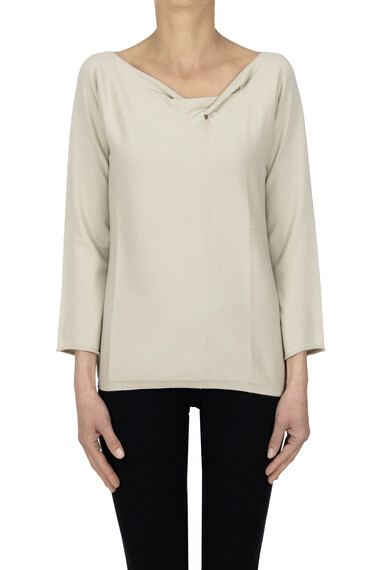 Viscose pullover, boat neckline with knot, 3/4 sleeves.