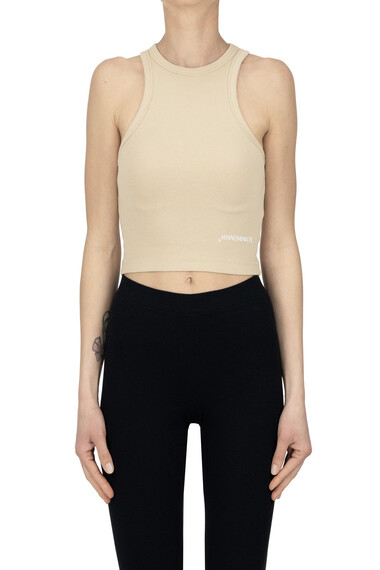Cropped ribbed tank top, designer logo.