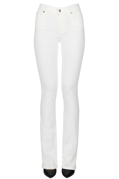 Jeans Bootcut elasticizzati, modello 5 tasche, zip e bottone frontale.