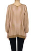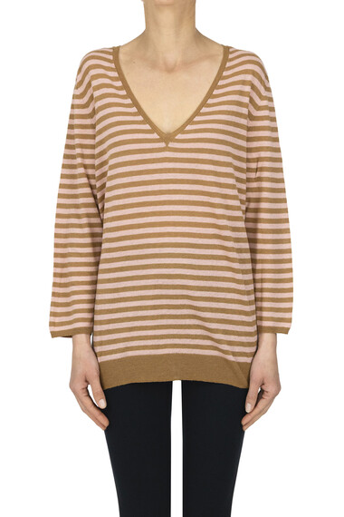 Pullover a righe in lino e cotone, scollatura a V, maniche a 3/4.