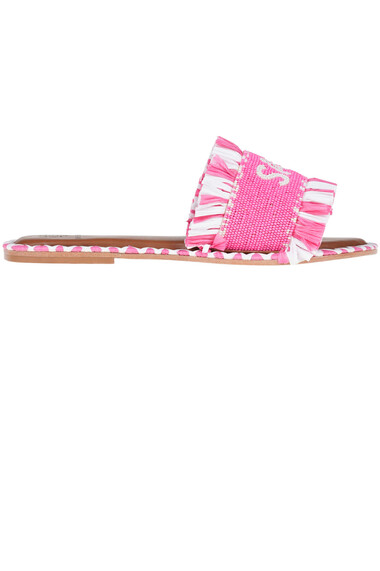 Ciabatte Saint Tropez in rafia sfrangiata con perline.