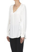 Camicia in crepè, scollatura a V con lacci e dettagli in metallo argentato.