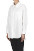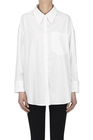 Camicia oversize in cotone con retro in sangallo, abbottonatura frontale, colletto, taschino sul petto.