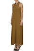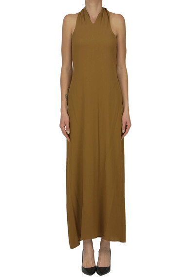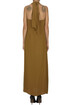 Abito in crepè, scollatura all'americana con laccio dietro il collo, zip laterale.