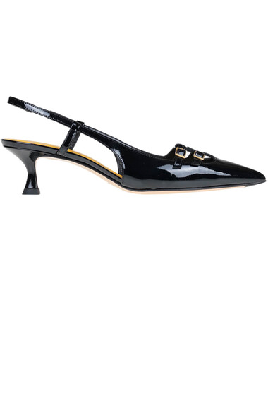 Decollettè slingback in vernice di pelle, tacco a rocchetto rivestito.