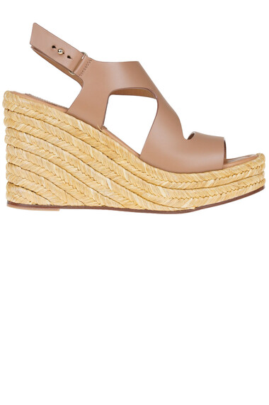 Sandali in pelle con zeppa in rafia Lise, cinturino dietro la caviglia.