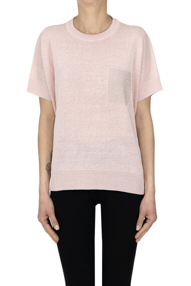 Pullover a scatoletta in misto lino con taschino gioiello, maniche corte.