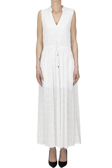 Abito in cotone con arricciature, coulisse in vita, zip laterale.