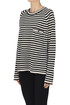 Pullover Canti a righe in lino, taschino sul petto con bottone dorato.