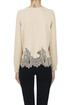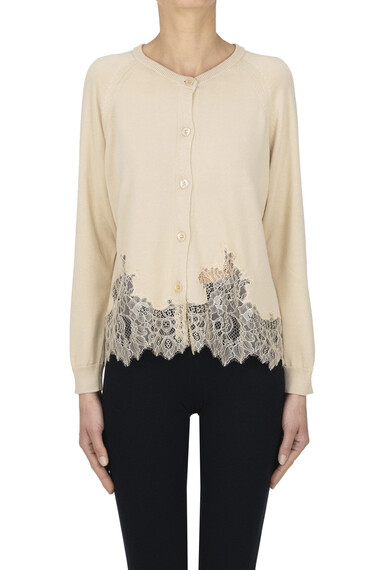 Cardigan in cotone con orlo in pizzo, scollatura rotonda.