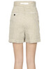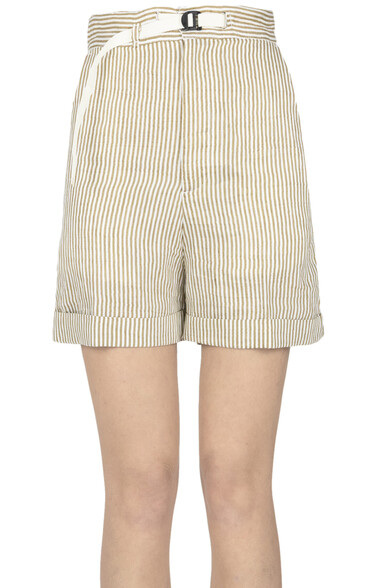 Shorts a righe in misto lino, chiusura con zip e bottone frontale, cinturino incorporato.