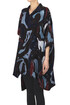 Camicia oversize stampata in cupro, collo con revers, spacchi laterali, taschini sul petto, orlo più lungo sul retro.