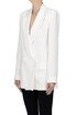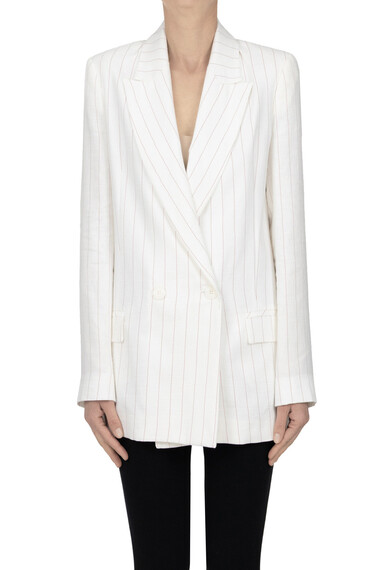 Pinstriped linen blazer with red lurex stripes, lapel collar, lined interior.