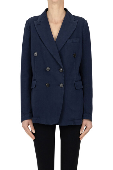 Double breasted piquet cotton ad linen blazer, lapel collar.