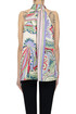 Foulard print satin top, self-tie back sash.