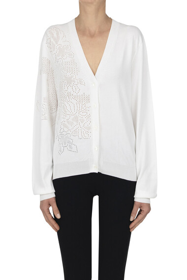 Oliveto cardigan with cut-out knit inserts, V-neckline, ribbed trims.