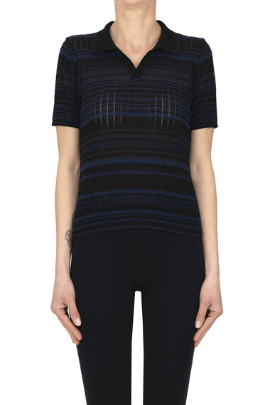 Striped knit polo shirt
