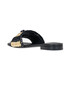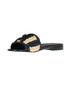 Blejan striped woven rafia slides with designer logo.