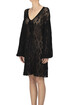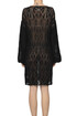 Crochet cottn knit dress, flared long sleeves, laces at front.