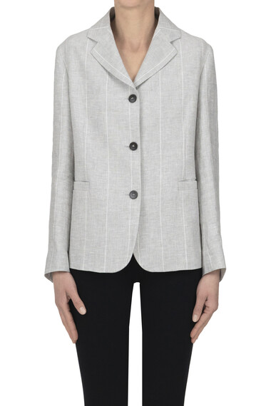 Pinstriped linen blazer, flared, button-fastenings at front, lined interior.