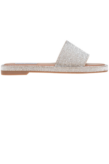 Achieve embellished eco-leather slides.