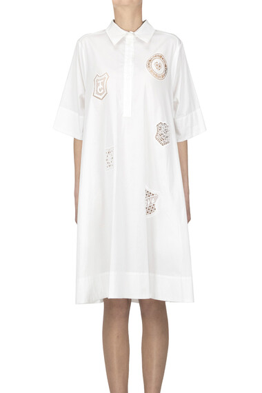 Cotton wide shirt dress with lace inserts, button-fastenings at front, collar, side pockets.