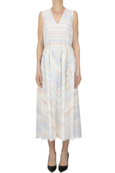 Striped cotton and linen dress, lined interior, detachable rope waistbelt.